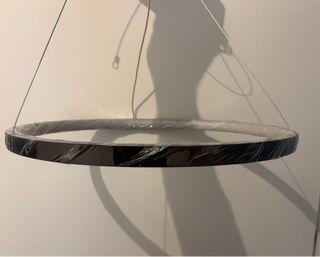 Elegante lampadario a sospensione con un design moderno. La sua forma circolare lo rende un punto focale in qualsiasi ambiente. Diametro 40 cm - Struttura in metallo e plastica. - Finitura bicolore nero e argento.