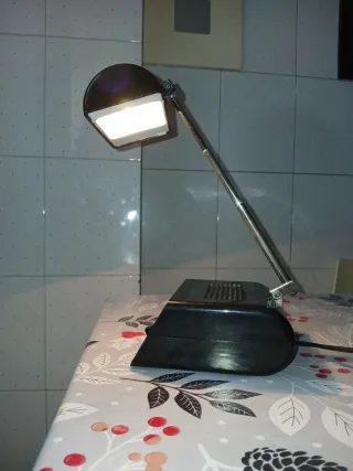 Lampada da tavolo con design retrò, perfetta per aggiungere un tocco vintage al tuo spazio. - Altezza regolabile grazie al braccio telescopico. - Base stabile e finitura lucida.
