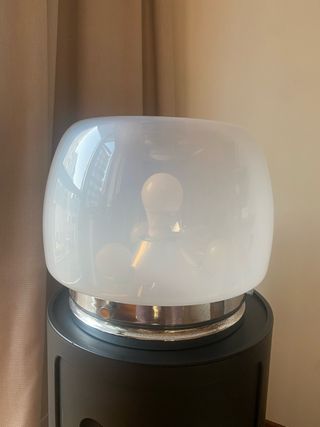 Lampada anni 70 vetro opalino e acciaio