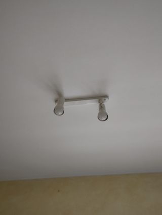 Plafoniera / faretto da soffitto a 2 luci, colore bianco, dal design semplice e moderno. Dotata di due faretti orientabili che permettono di direzionare la luce dove serve, ideale per illuminare soggiorno, corridoio, camera o cucina. Struttura compatta e minimal, facile da installare e perfetta per adattarsi a diversi stili di arredamento. Buone condizioni. DIMENSIONI: lunghezza 40cm larghezza 4.5cm Disponibile anche un secondo faretto identico, acquistabile separatamente o insieme.