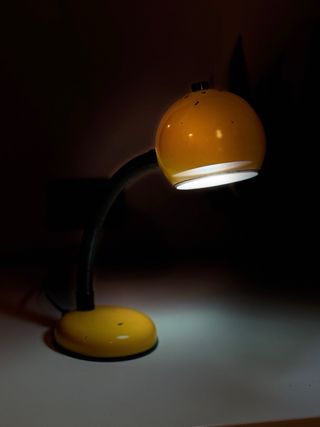 Lampada da tavolo vintage Veneta Lumi, un pezzo di design unico. - Base gialla. - Braccio flessibile nero. - Paralume a cupola giallo. Made in Italy Anni 70 Space age / Good Design Segni del tempo in foto
