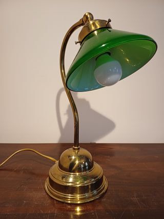 Antica lampada modello Ministero, anni 50, funzionante, condizioni come da foto, qualche segno del tempo, altezza cm. 36, diametro base cm. 15, cupola in vetro opalino verde consegna a mano zona Parma, su richiesta si effettuano spedizioni, per visionare altre lampade di modernariato, antiche o vintage cliccare sul mio profilo