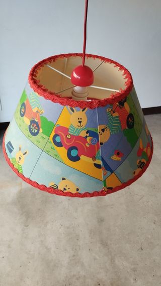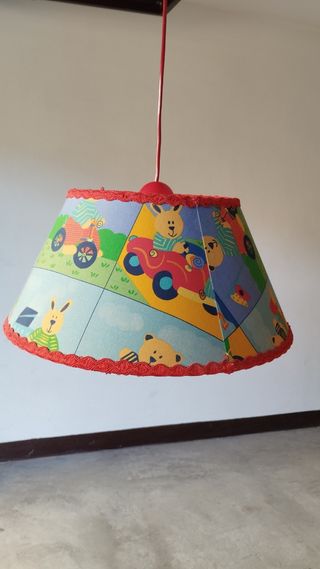 Lampadario cameretta bambino/a. Diametro basso 45, diametro alto 26, lunghezza filo 70 accorciabile all'esigenza. Molto bello