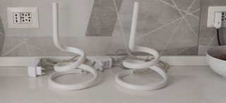 Coppia di lampade da tavolo / abat-jour a LED, luce naturale 1640 LUMEN. Design moderno, colore bianco, luce led inclusa. Misure: H28xL18 cm Il prezzo di 40 euro è per la coppia.