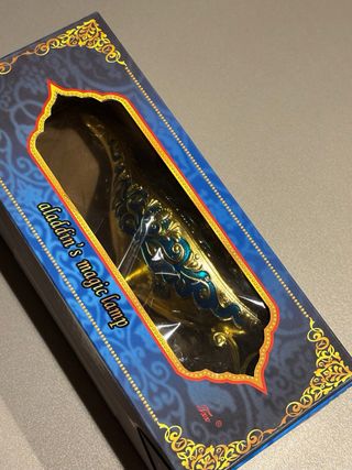 Lampada decorativa ispirata alla lampada magica di Aladino. Un pezzo unico con dettagli elaborati. - Design intricato con finiture blu e oro. - Realizzata in metallo resistente.