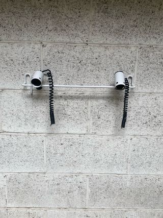 Set di due faretti con finiture in metallo bianco e plastica nera von attacco lampadina E27. Di design moderno.