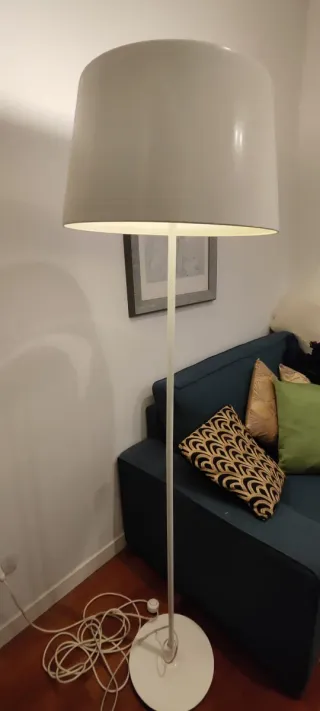 Lampada da terra modello Kulla di Ikea. Un elemento di design che illumina con stile. Manca fendi luce superiore (non lo usiamo perché levava troppa luce). Altezza 170 cm, larghezza paralume 50 cm, base piantana 30 cm. - Struttura in metallo. - Finitura bianca lucida.