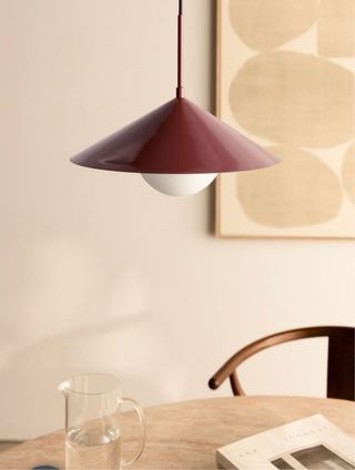 Lampadario Sklum bordeaux nuovo mai usato arrivato doppio Nuovo con scatola e istruzioni montaggio Misure: Diametro: 34,5 cm Lunghezza del cavo: 145 cm Peso: 1,10 kg Materiale Materiale: Vetro Altri materiali: