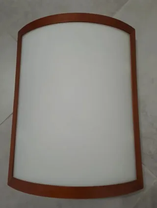 Plafoniera dal design moderno con cornice in legno e diffusore in plastica. - Cornice esterna in legno. - Pannello diffusore in plastica bianca. - Forma curva.