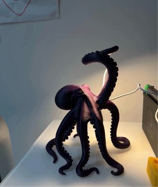3D-printed decorative lamp featuring a stylized black octopus with a bold, contemporary look Height 23 cm – ideal as an accent light for modern interiors Low-energy LED light, perfect for creating a warm atmosphere Striking design piece that blends lighting and decor #blacklamp #octopuslamp #ledlight #modernlighting #homedecor #interiordesign #designlamp #decorativelamp
