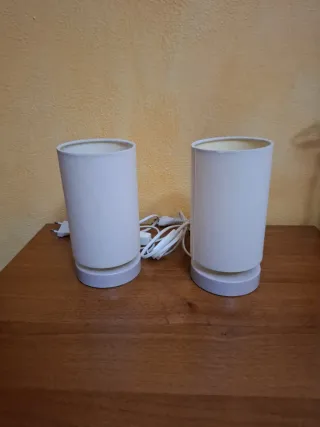 Set di due lampade da comodino con paralume in tessuto. - Base in plastica. - Design cilindrico moderno.