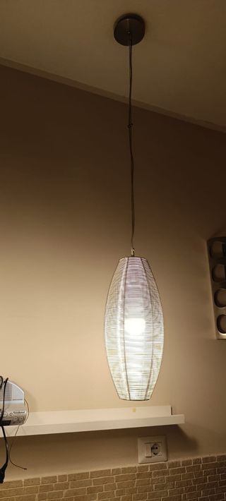 Due lampade a sospensione in bambù, ricoperte in bianco, usate pochissimo causa trasloco Foto appesa presa dal web per dare un’idea