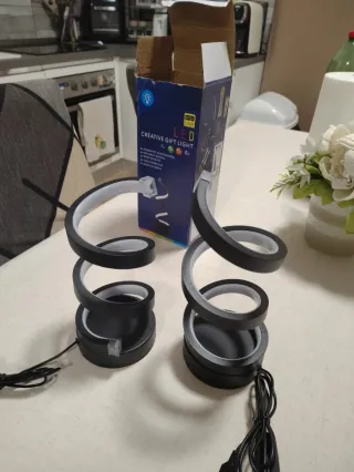 Coppia di lampade da tavolo con un design a spirale moderno, perfette per creare un'atmosfera accogliente. Alimentate tramite USB (adattatore NON incluso). - Design a spirale creativo - Luce LED - Interfaccia USB - Tonalità e intensità di luce regolabili