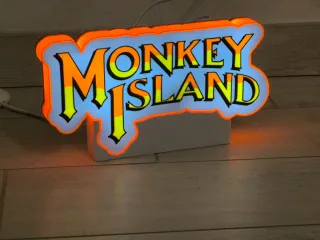 Lampada LED con la scritta Monkey Island. Perfetta per gli appassionati. - Design unico e accattivante. - Illuminazione d'atmosfera.