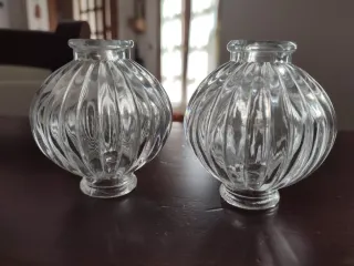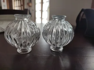Set di due portalampada in vetro trasparente. Presentano un design rigato che aggiunge un tocco decorativo. - Materiale: Vetro - Colore: Trasparente - Quantità: 2 pezzi