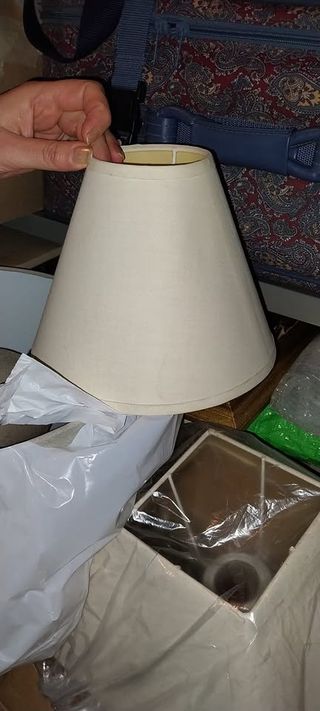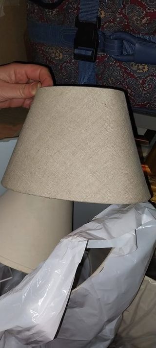 Set di paralumi per lampade da tavolo. - Colore beige neutro. - Realizzati in tessuto. - paralume tronco di cono in tela e pvc color grigio chiaro diametro 33 cm altezza 24 cm. - paralume piramide in tela color avorio 28dx12d e altezza 16,5 cm. - paralume ovale in cotone color beige asse maggiore 22 cm. e altezza 14 cm. - paralume a forma di barile in tela color avorio diametro 22,5 cm. e altezza 17,5 cm.
