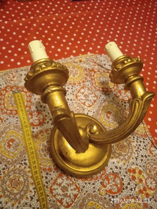 Coppia di applique vintage in legno dorato, in stile barocco. Ottimo stato. Regolarmente funzionanti. Perfette per aggiungere un tocco classico alla tua casa.