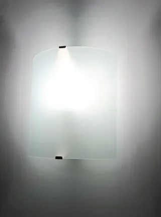 Elegante applique da parete in vetro satinata con design moderno e minimalista. Attacco per lampadina E14, dimensioni 22x19 cm