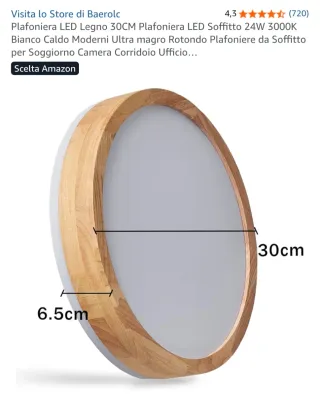 Plafoniera LED rotonda con finitura in legno e luce bianco caldo. - Diametro 30 cm. - Design moderno e sottile. - Ideale per soggiorno, camera o corridoio.