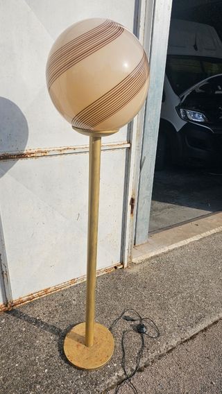 Elegante piantana vintage risalente agli anni '80, caratterizzata da una sfera decorativa. - Sfera in vetro con motivo a righe. - Struttura in metallo.