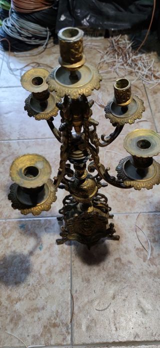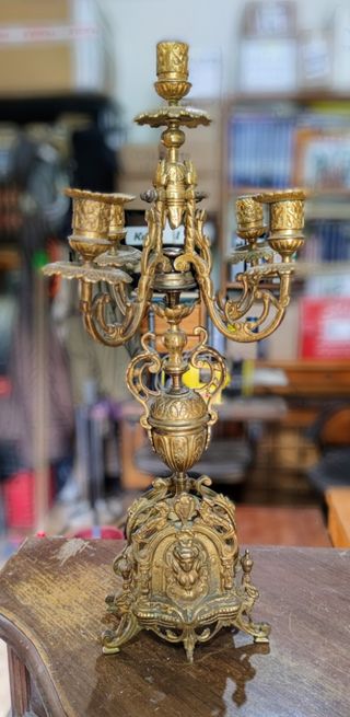 Antico candelabro in bronzo dorato. Epoca inizi 900. altezza.max.45. condizioni buone