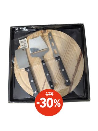 Esalta ogni degustazione con il nostro Set Formaggi con Tagliere, perfetto per servire con stile! Realizzato con materiali di qualità, include coltelli specializzati per ogni tipo di formaggio. Ideale per cene, aperitivi e regali raffinati. Un must per gli amanti del buon cibo! NUOVO DA APRIRE. Diametro: 24cm. Excita cada degustación con nuestro Set de Quesos con Tabla, ¡perfecto para servir con estilo! Hecho con materiales de calidad, incluye cuchillos especializados para cada tipo de queso. Ideal para cenas, aperitivos y regalos refinados. Una necesidad para los amantes de la buena comida! NUEVO PARA ABRIR. Diámetro: 24 cm.