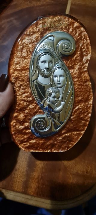 sacra famiglia di vetro di murano con piastrina argento