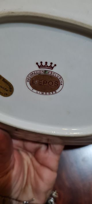 Piccolo vassoio in porcellana Limoges bianco e oro Misura base cm 12,5x8