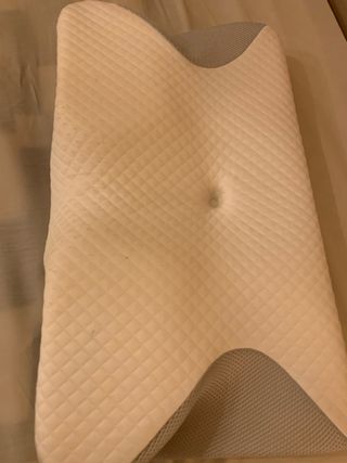 Cuscino ergonomico in memory foam, pensato per il supporto del collo. - Design sagomato per un comfort ottimale. - Rivestimento in tessuto trapuntato.