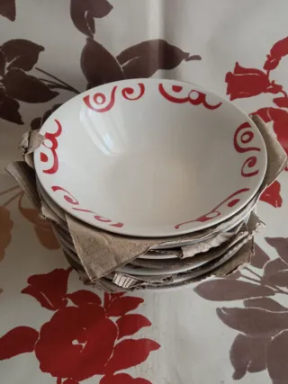 Set di 6 ciotole Galbani, perfette per la tua tavola. - Mai usate, in condizioni pari al nuovo. - Design elegante con decorazioni rosse su sfondo bianco. - Realizzate in ceramica di alta qualità.