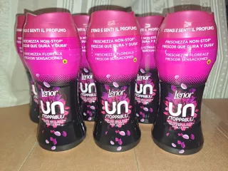 6 confezioni di perle profumate per bucato Lenor Unstoppables freschezza floreale. Perlas de perfume para la ropa frescor sensaciones. Disponibile ad inviare quantitativi maggiori o minori. Ho molti pezzi.