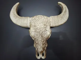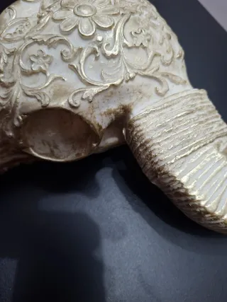 Bellissimo teschio decorativo da appendere alla parete. Un pezzo unico con un design elaborato. - Finitura beige con dettagli oro. - Motivi floreali e ornamentali. - Ideale per aggiungere un tocco di stile a qualsiasi ambiente.