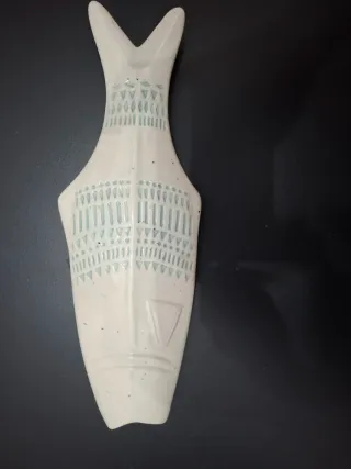 Bellissimo ornamento da parete a forma di pesce, perfetto per aggiungere un tocco di originalità alla tua casa. - Design unico a forma di pesce. - Decorazione con motivi geometrici azzurri. - Realizzato in ceramica di alta qualità.