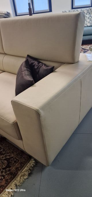Elegante divano a 3 posti Dalton in fior di pelle, perfetto per aggiungere un tocco di classe al tuo soggiorno.Piedini in acciaio. Poggiatesta reclinabili. - Rivestimento in pelle di alta qualità. - Design moderno e confortevole. - Colore beige versatile.