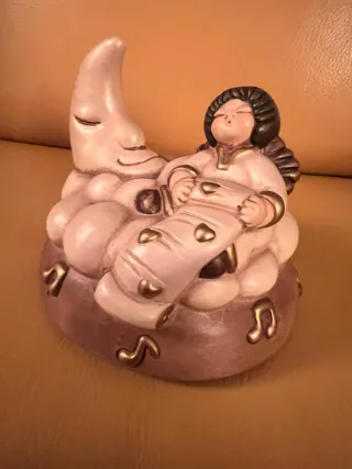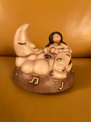 Delicato carillon Thun in ceramica, ottimo per aggiungere un tocco di dolcezza alla tua casa. Perfettamente funzionante - Design con luna e note musicali. - Dettagli dorati. - Finitura smaltata.
