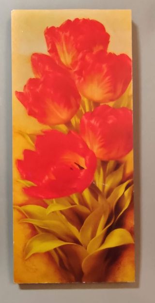 Quadretto floreale, realizzato su legno. Dimensioni 11 x 24 cm.
