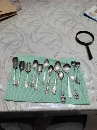 Un assortimento di cucchiaini con diverse decorazioni. - Cucchiai in metallo con manici lavorati. - Alcuni presentano dettagli colorati. - Ideali per collezionisti o come pezzi d'arredo. Solo 1 argento 1000 , altre in silver o acciaio. Alcuni in buono stato altri da pulire e con evidenti segni di usura. Prezzo per tutti