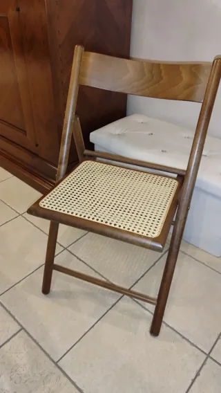 Elegante set di sei sedie pieghevoli, perfette per aggiungere un tocco di stile alla tua casa. Facili da riporre quando non in uso. - Struttura in legno robusto. - Seduta in rattan intrecciato. Vendibili anche singolarmente al prezzo di €34