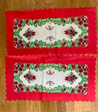 Set di tovagliette natalizie eleganti, perfette per decorare la tavola delle feste. Tessuto rosso con motivi di campane, stelle di Natale e fiocchi, bordo smerlato con dettagli dorati. Il set include: ✔ 2 tovagliette lunghe (ideali come centrotavola o runner) ✔ 4 tovagliette rettangolari (perfette come sottopiatti) In ottime condizioni, senza difetti. Spedisco in giornata per consegna rapida! Solo i due runner 6€ Solo le tovagliette 6€ 📏 Dimensioni: runner 70x 40 tovagliette 30x40 🎨 Colore: Rosso con dettagli verdi, bianchi e oro 🧵 Materiale: Tessuto acrilico ❄️ Dettagli: Bordo smerlato, decorazioni natalizie 📦 Condizioni: Ottime