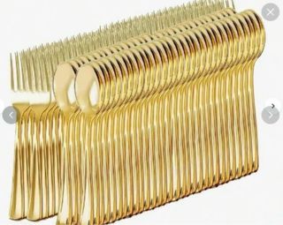 Set di 200 posate dorate, perfette per ogni occasione. Questo set include un gran numero di forchette e cucchiai. - 100 forchette - 100 cucchiai