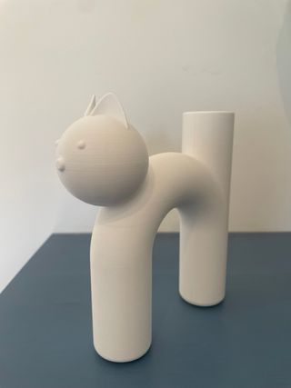 Vaso decorativo in plastica bianca, a forma di gatto stilizzato. Un pezzo unico per aggiungere un tocco di originalità alla tua casa. - Altezza circa 18 cm. - Design moderno e minimalista.