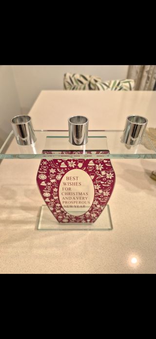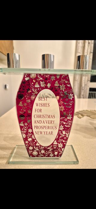 Elegante portacandele per 3 candele, perfetto per le festività natalizie. Presenta un design a forma di cuore con decorazioni a tema. - Base in vetro trasparente. - Dettagli decorativi natalizi. - Ideale per creare un'atmosfera accogliente.