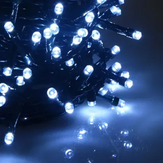 Catena luminosa con 100 LED, adatta sia per uso esterno che interno. Presenta giochi di luce. 9 metri di lunghezza luce fredda (bianca) - 100 LED - Uso esterno e interno - Giochi di luce
