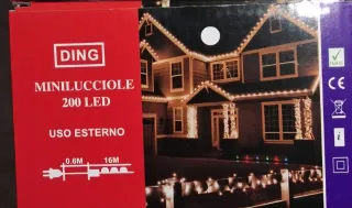 Luci luminose per decorazioni natalizie. - Luci LED bianco. - Filo verde scuro. - Adatte sia per interno che per esterno. - 200 LED. - Lunghezza 16 metri - Completo di regolatore manuale per intermittenza luci.