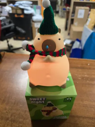 Lampada Sweet Night in silicone, perfetta per creare un'atmosfera accogliente. - Design a forma di animale con cappello natalizio e sciarpa. - Luce soffusa e rilassante. - Carica usb