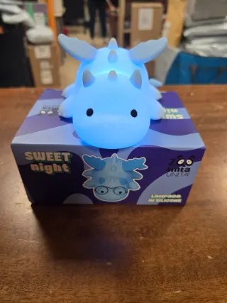 Lampada in silicone, un simpatico accessorio decorativo. - Design a forma di dinosauro. - Colori vivaci rosa e azzurro. - Carica usb