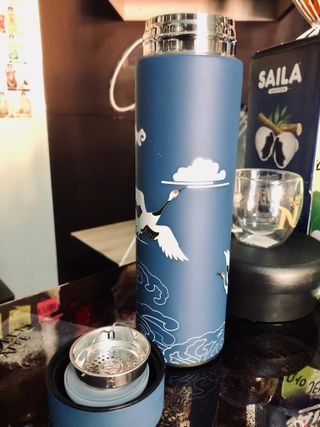 Borraccia termica con un elegante design ispirato all'arte orientale. Perfetta per mantenere le tue bevande alla temperatura desiderata. dotato di display LED impermeabile che può essere completamente immerso nell'acqua. Basta toccare lo schermo LED, si può capire chiaramente la temperatura interna del liquido senza passare la bocca per testare la temperatura ed evitare ustioni. - Motivi decorativi con gru e fiori. - Finitura lucida e dettagli raffinati. - Tappo con display touch per visualizzare la temperatura.