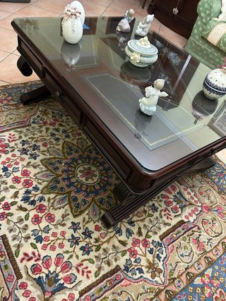 Tavolino salotto legno con piano in pelle