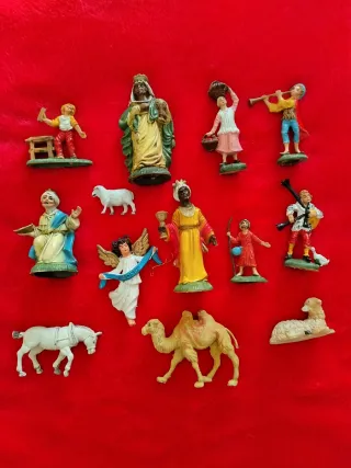 Set di 13 statuine per presepe natalizio. - Personaggi assortiti. - Ideali per creare la tua scena natalizia. Tutte in buone condizioni. Misura in foto.