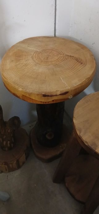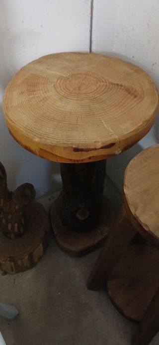 Bellissimo tavolino in legno massello, dallo stile rustico e naturale. Ideale per un ambiente accogliente. - Piano tondo in legno spesso. - Base tronco d'albero lavorata artigianalmente. - Perfetto come tavolino da salotto o comodino. Solo ritiro di persona